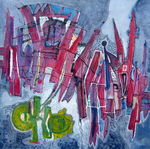 - Schilderijen van Marieke Hack met gemengde technieken.