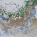 Een werk dat is begonnen met een stuk handgeschept papier wat vervolgens met verf bewerkt is.