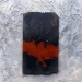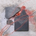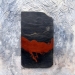 Een gebruikte leisteen , bepoederd met een puur natuurlijk rode-oker pigment uit Frankrijk, zwevend vastgezet op een beschilderde houten plaat.Het werk ligt in een grijze baklijst.